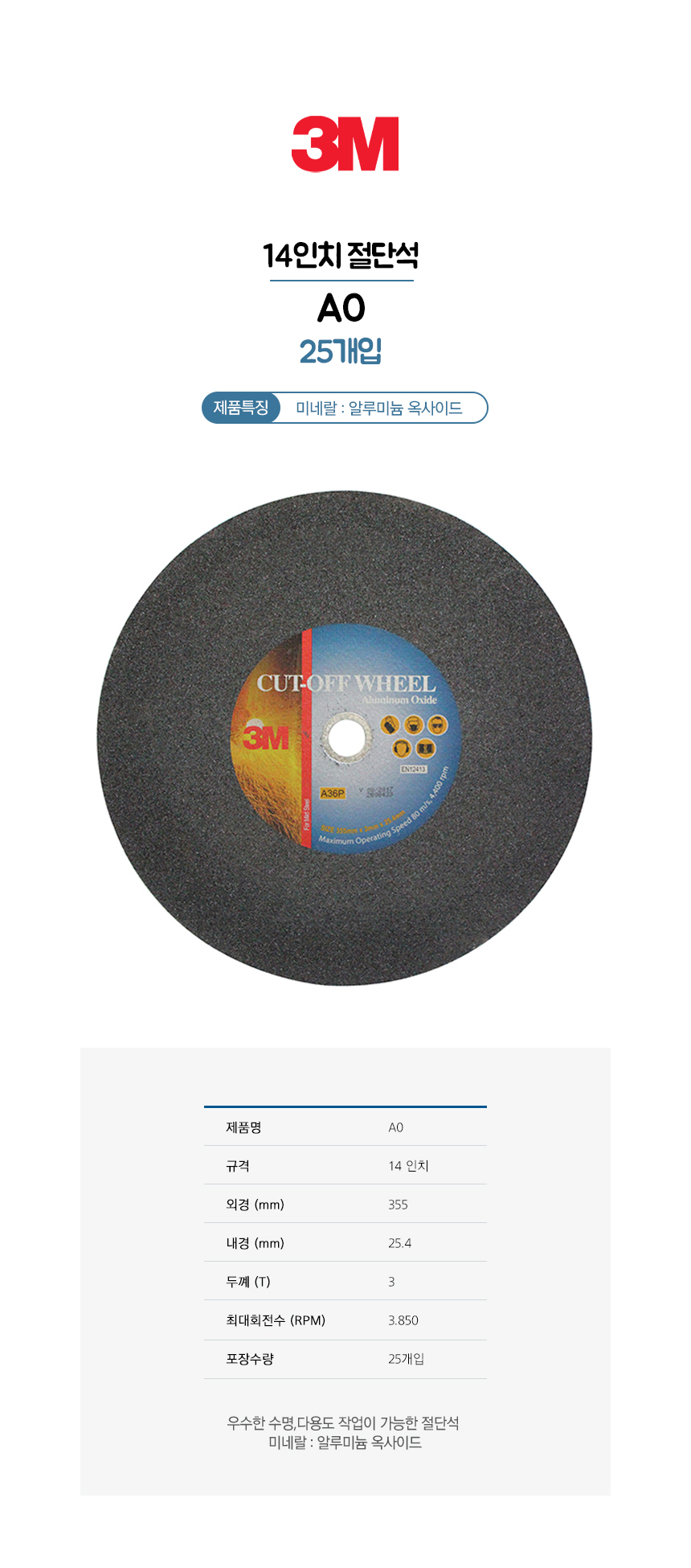 3M 절단석 14인치 3T A0 그라인더날 (25개)/3M 절단석 14인치 3T A0 그라인더날 (25개)