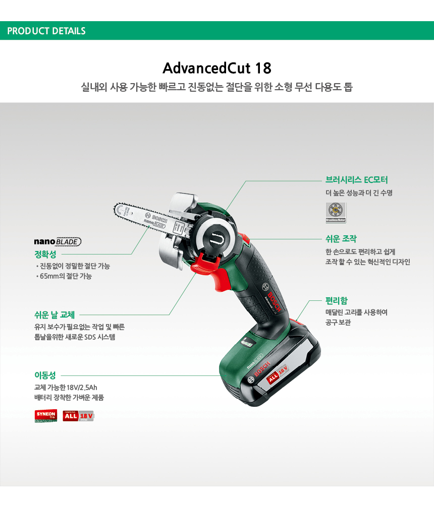 보쉬 충전식 무선체인톱 AdvancedCut18/보쉬 충전식 무선체인톱 AdvancedCut18