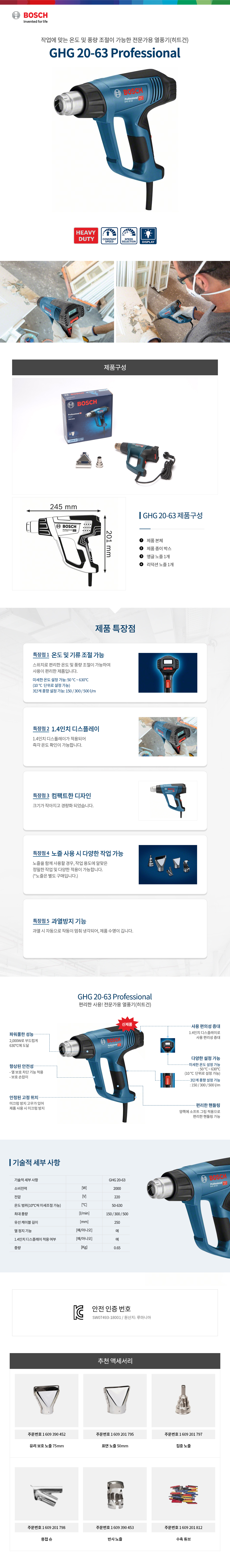 보쉬 열풍기 프로페셔널 히팅건 힛툴 GHG20-63