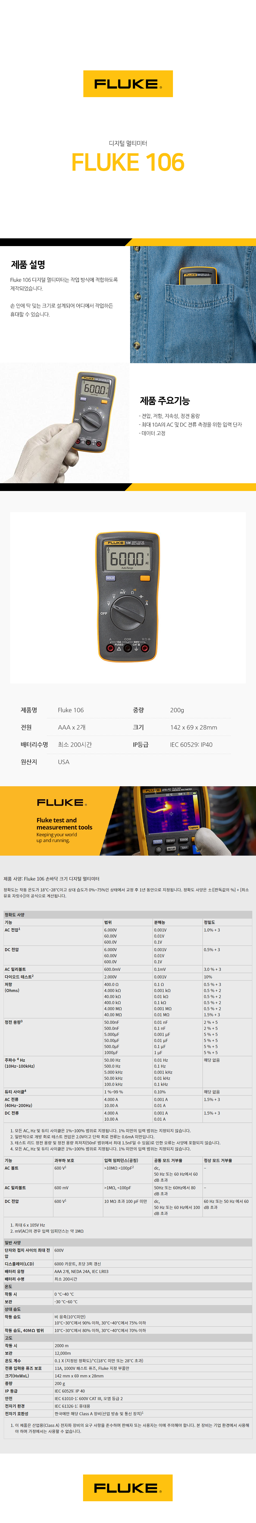 플루크 디지털 멀티미터 Fluke 106/플루크 디지털 멀티미터 Fluke 106