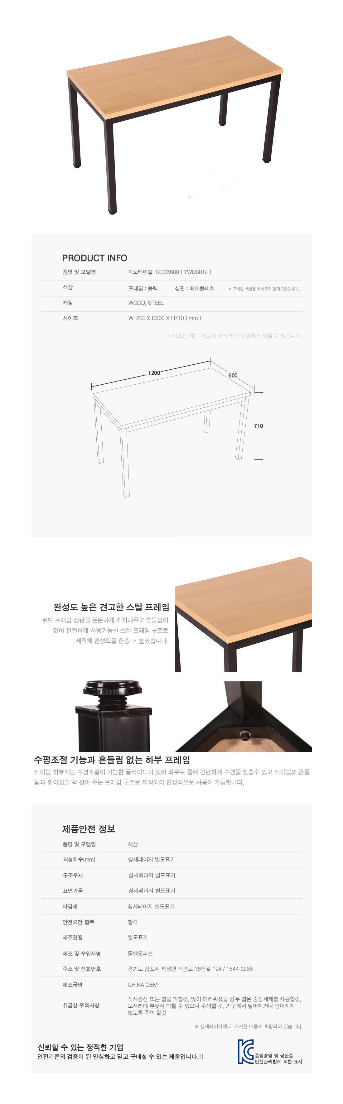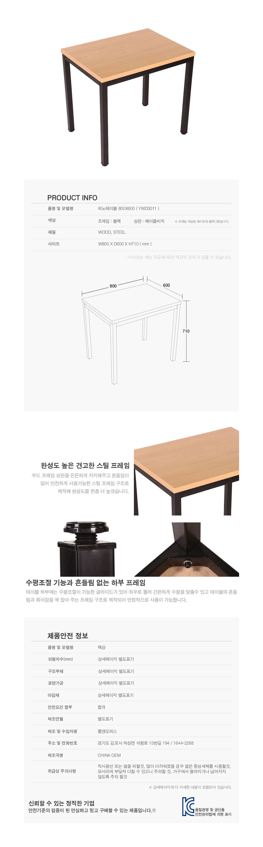 상판을 든든하게 지지해주고 흔들림이 없이