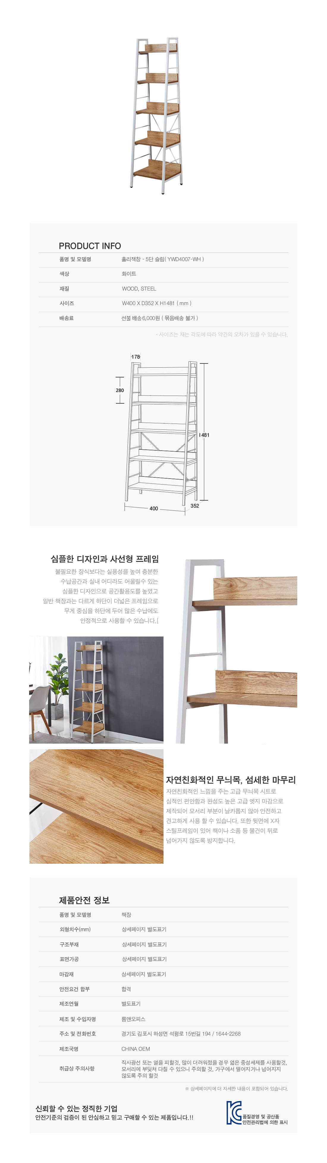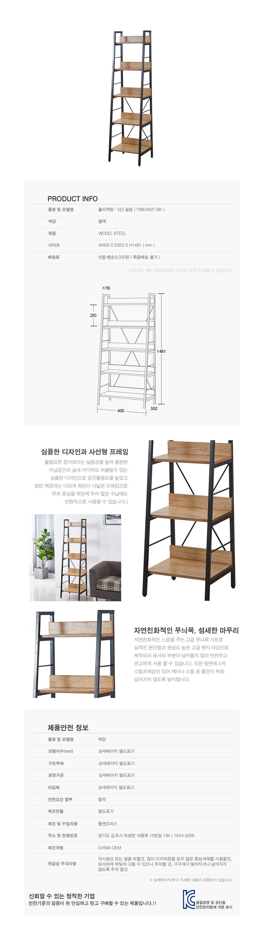 DIY 철제 사선 슬림 5단 책장 선반 수납장