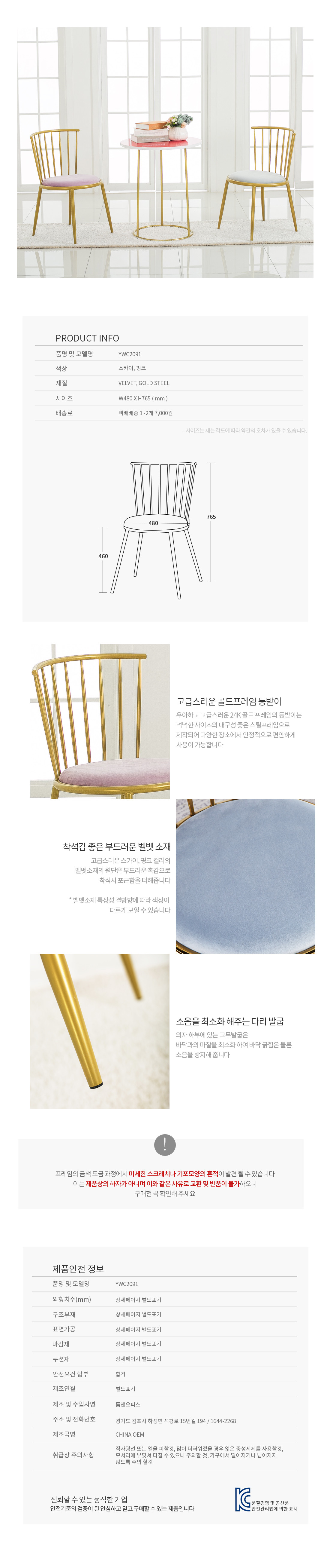 인테리어 골드프레임 등받이벨벳의자/YWC2091
