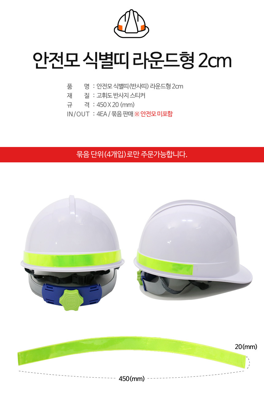 안전모 식별띠 라운드형 2cm 반사효과 반사띠 안전용품 개인보호구