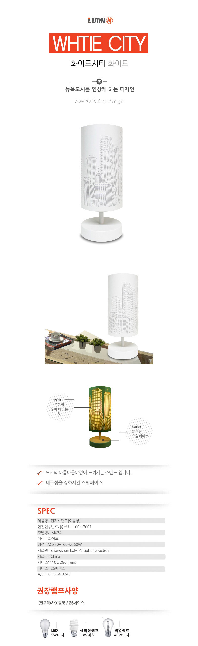 인테리어 로맨틱 LED스탠드 단스탠드 침실스탠드